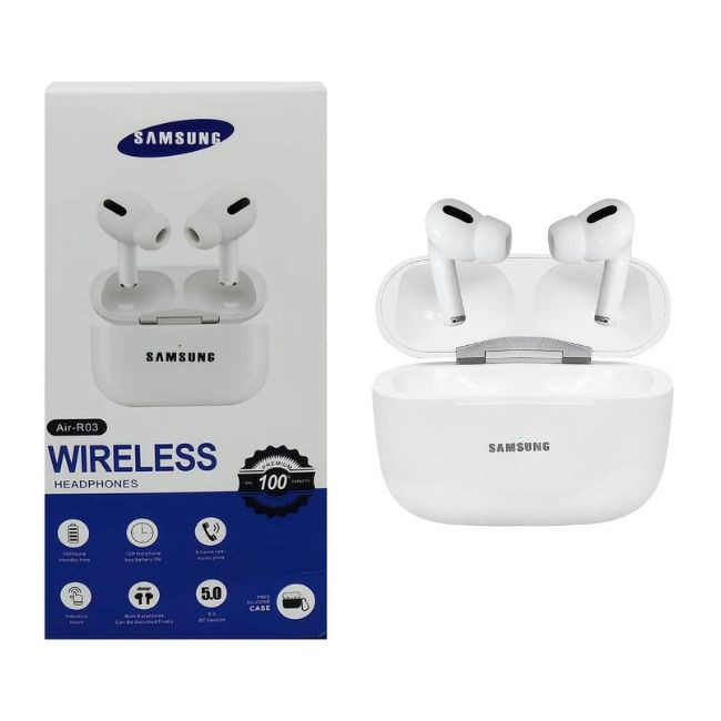 هدفون بیسیم SAMSUNGمدل Air-R03 یکی از گزینههای مقرونبهصرفه برای علاقهمندان به موسیقی و مکالمه روزمره است. این هدفون با طراحی مشابه ایرپادهای محبوب، وزن سبک، و قابلیتهای متنوع، انتخابی مناسب برای استفاده روزانه محسوب میشود.