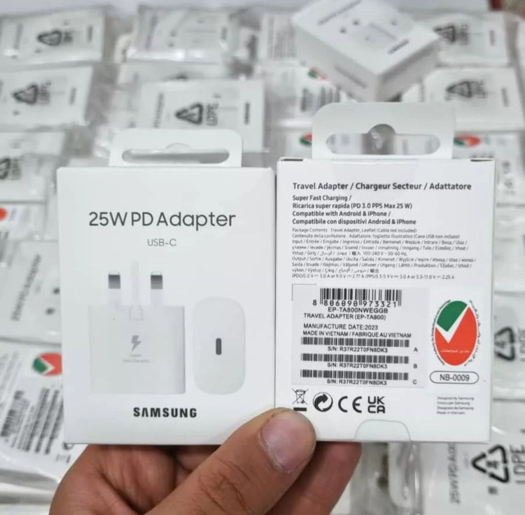 آداپتور ۲۵ وات سامسونگ (مدل EP-TA800) یکی از بهترین انتخابها برای شارژ سریع و ایمن گوشیهای جدید سامسونگ است. این شارژر با پشتیبانی از فناوری Super Fast Charging و استاندارد Power Delivery 3.0، قابلیت شارژ فوقسریع را برای دستگاههای سازگار فراهم میکند. دارای خروجی USB-C است و توان شارژ ۲۵ وات را از طریق ولتاژ ۵ ولت تا ۹ ولت و جریان حداکثر ۳ آمپر ارائه میدهد. این آداپتور با بدنهای جمعوجور و سبک، برای استفاده روزمره یا هنگام سفر بسیار مناسب است. طراحی ایمن و مدار محافظ داخلی آن از دستگاه شما در برابر نوسانات برق، حرارت بالا، اتصال کوتاه و جریان بیش از حد محافظت میکند. ولتاژ ورودی آن ۱۰۰ تا ۲۴۰ ولت بوده و برای استفاده در کشورهای مختلف بدون نیاز به مبدل قابل استفاده است. این محصول در رنگهای سفید یا مشکی و معمولاً بهصورت تکی (بدون کابل) عرضه میشود. برای بهترین عملکرد توصیه میشود از کابل USB-C به USB-C اصلی سامسونگ یا کابلهای با کیفیت بالا استفاده شود.