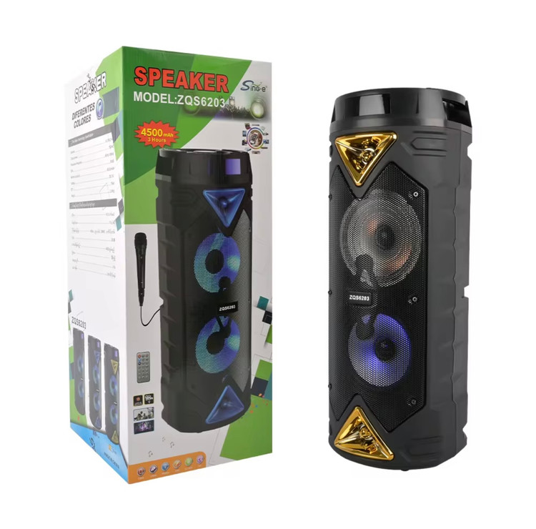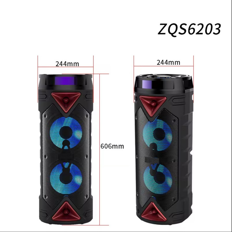 این اسپیکرZQS‑6203 با طراحی چمدانی، باتری مناسب، اتصالات کامل (بلوتوث ۵٫۰، AUX، USB، SD، رادیو) و تجهیزات جانبی مانند میکروفون، ریموت، رقص نور و صفحه نمایش، گزینهی کاربردی و بهصرفهای برای مهمانیهای خانگی و فضای آزاد محسوب میشود. راندمان صدا (30 وات) و دو سابووفر ۶٫۵ اینچی در این بازه قیمتی مناسب است.