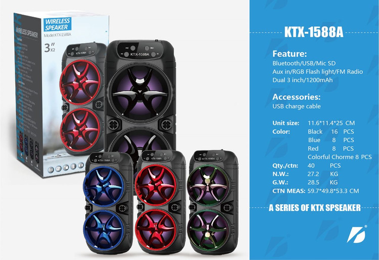 • امکانات: رادیو FM، رقص نور LED، قابلیت اتصال همزمان دو اسپیکر (TWS)