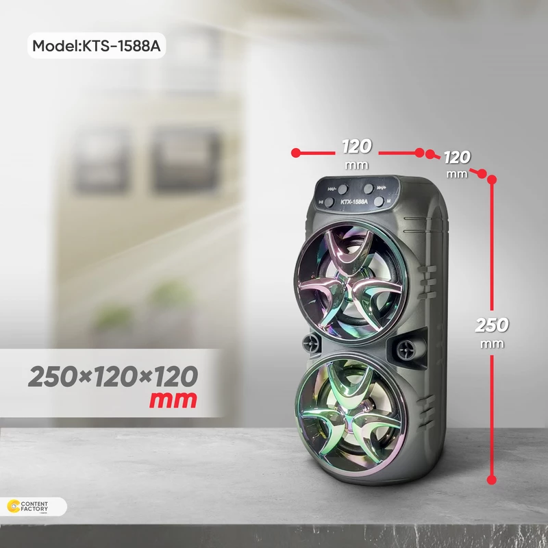 • امکانات: رادیو FM، رقص نور LED، قابلیت اتصال همزمان دو اسپیکر (TWS)