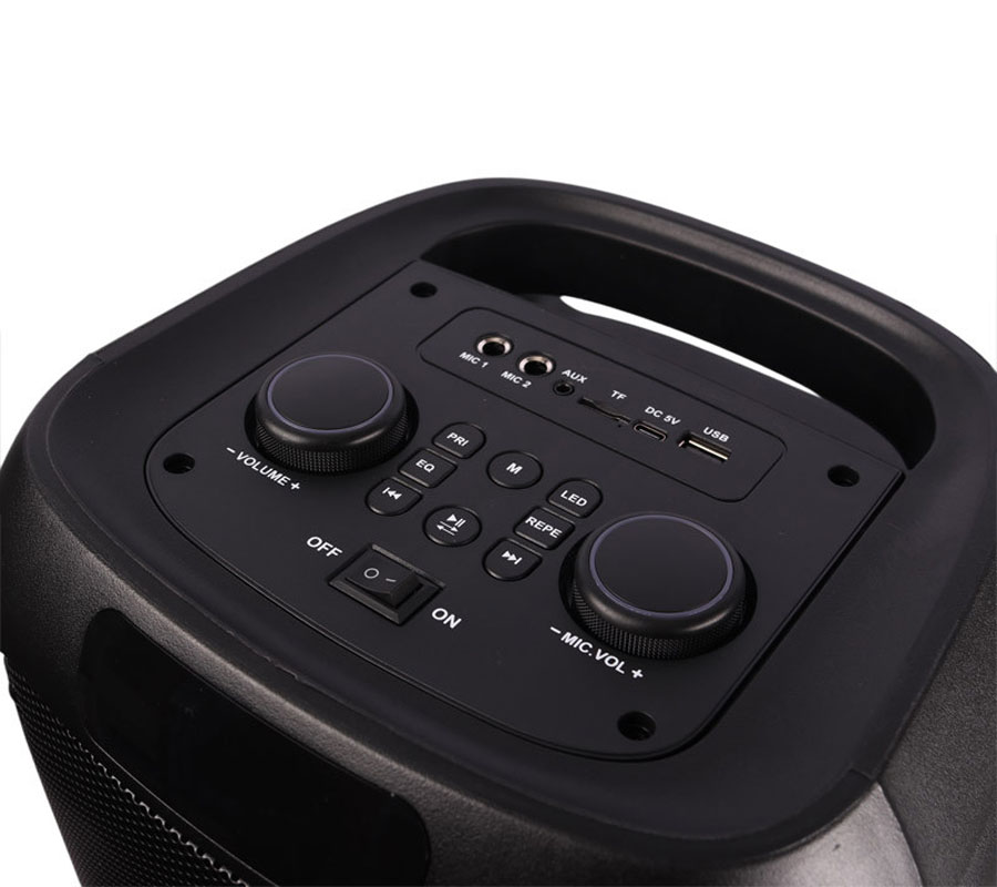 - اتصالات: بلوتوث 5.0، USB، کارت حافظه TF، AUX، ورودی میکروفون، رادیو FM، قابلیت TWS