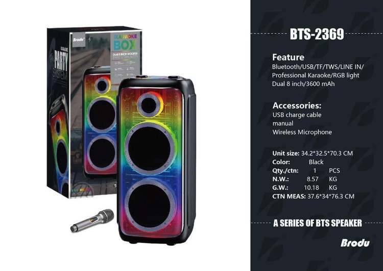 اسپیکر BTS 2369یک اسپیکر قابل حمل و قدرتمند است که طراحی مدرن و امکانات متنوعی را برای کاربران فراهم میکند. این اسپیکر انتخابی ایدهآل برای استفاده در مهمانیها، پیکنیکها، و محیطهای خانگی است.