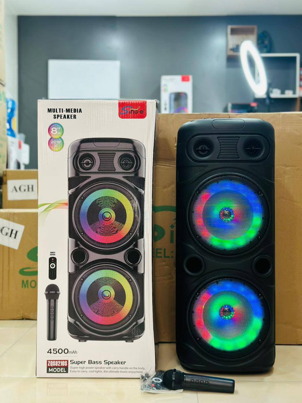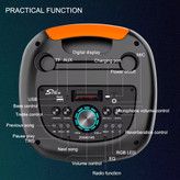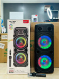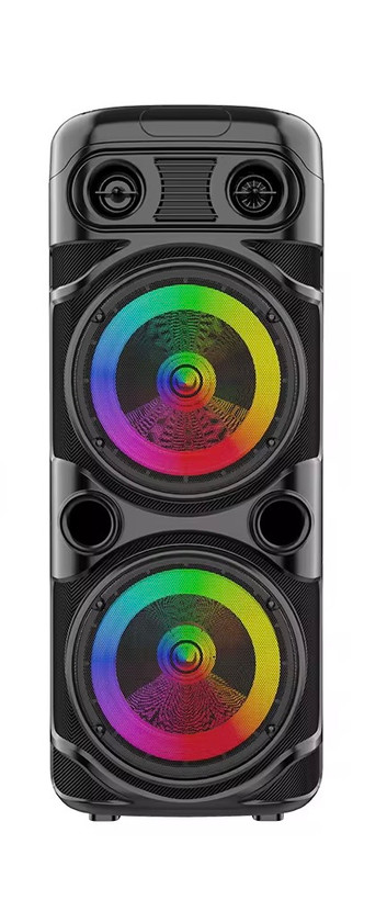 • امکانات: قابلیت TWS (اتصال همزمان دو اسپیکر)، رادیو FM، رقص نور RGB، نمایشگر LED، حالت Karaoke