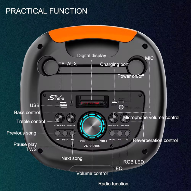 مشخصات فنی اسپیکر قابل حمل مدل ZQS-8210s
