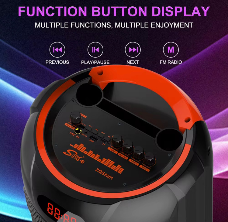 اسپیکر بلوتوثی مدل ZQS-8251 یک اسپیکر چمدانی قابل حمل با ویژگیهای زیر است: