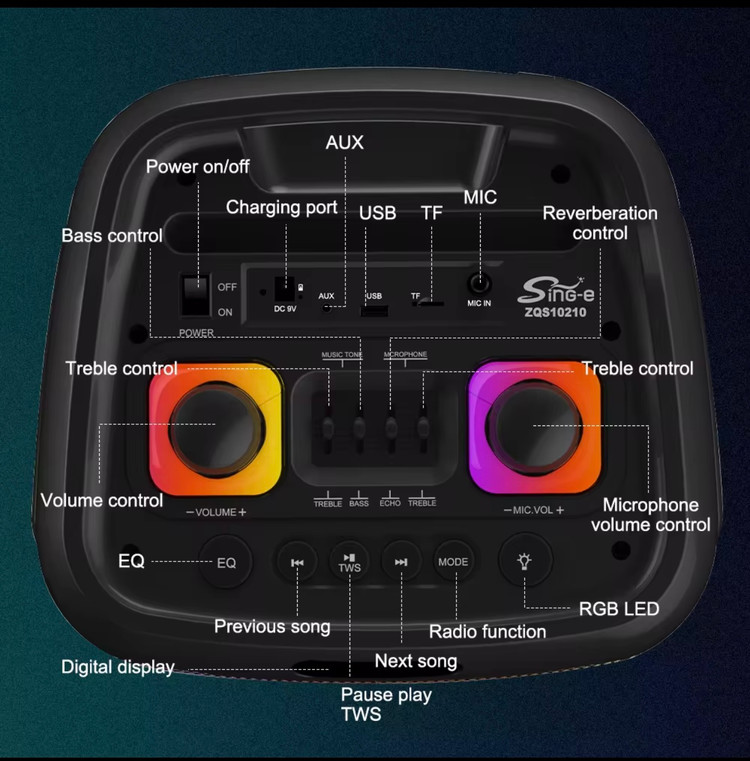 اسپیکر ZQS10210 یک گزینه ایدهآل برای مهمانیها، مجالس و استفادههای حرفهای است. این اسپیکر چمدانی با دو سابووفر ۱۰ اینچی، صدایی قدرتمند و باکیفیت ارائه میدهد. طراحی قابل حمل، نورپردازی جذاب RGB و امکانات متنوع، این مدل را به یکی از بهترین گزینهها برای علاقهمندان به موسیقی و اجراهای زنده تبدیل کرده است